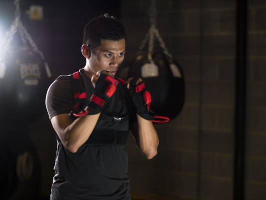 At launch, it plans to offer a first-person boxing-style game that pits you against a series of monsters on the PC, Mac and iOS (with Android compatibility down the road). What sets Quell’s approach apart, however, is the wearable resistance system. It’s basically an adjustable system of resistance bands that both simulate impact and track the wearer’s movements through a series of on-board sensors, including a gyroscope and accelerometers.